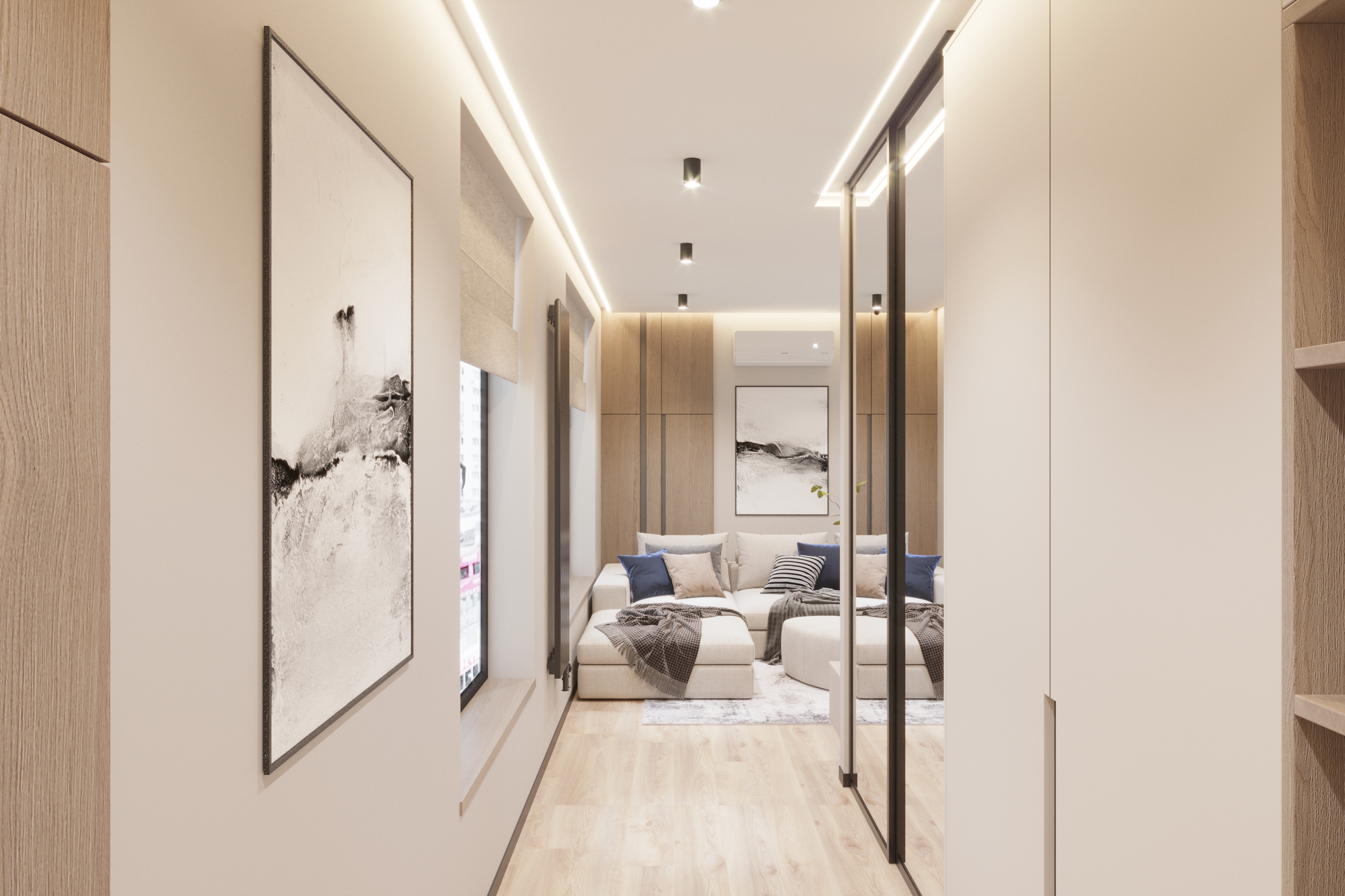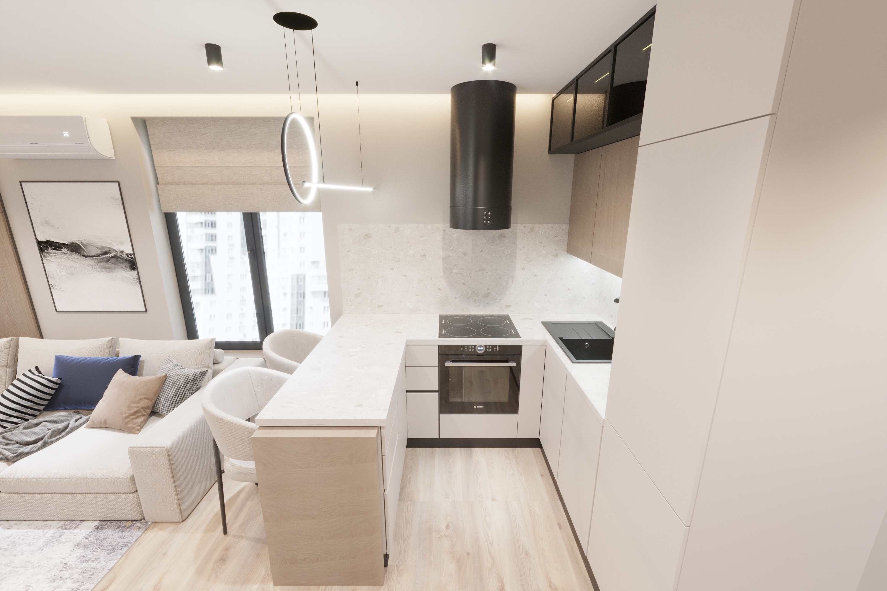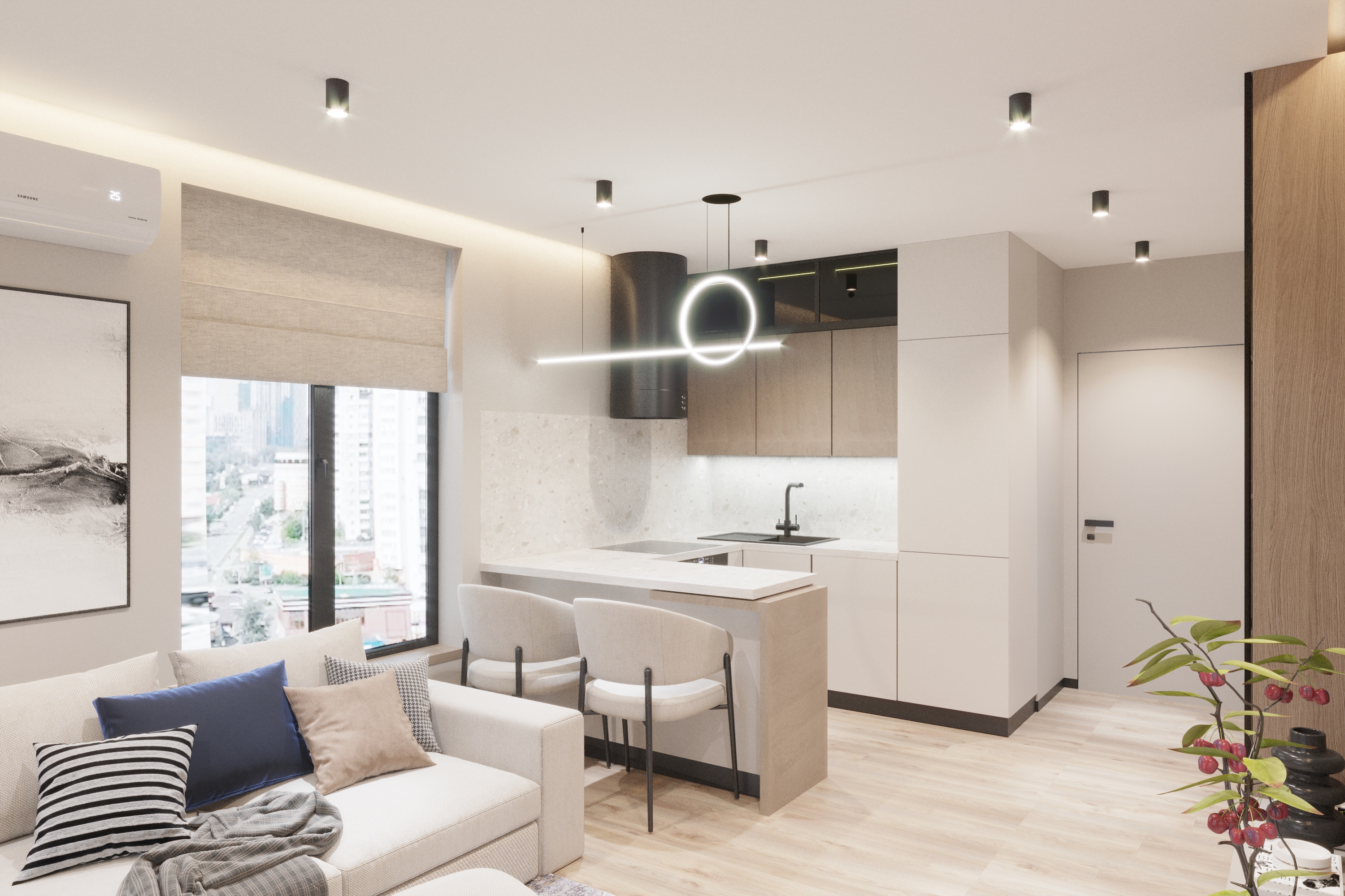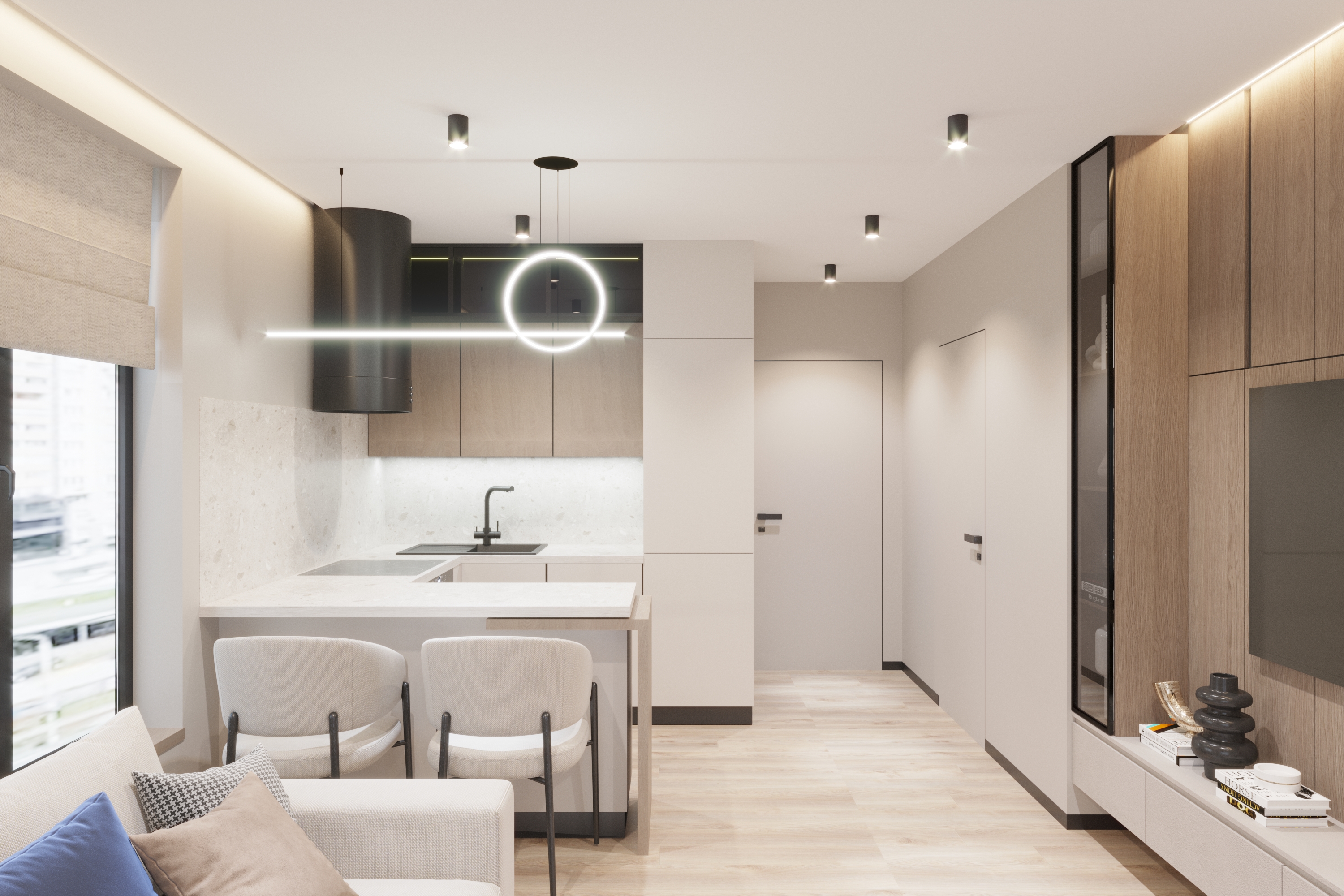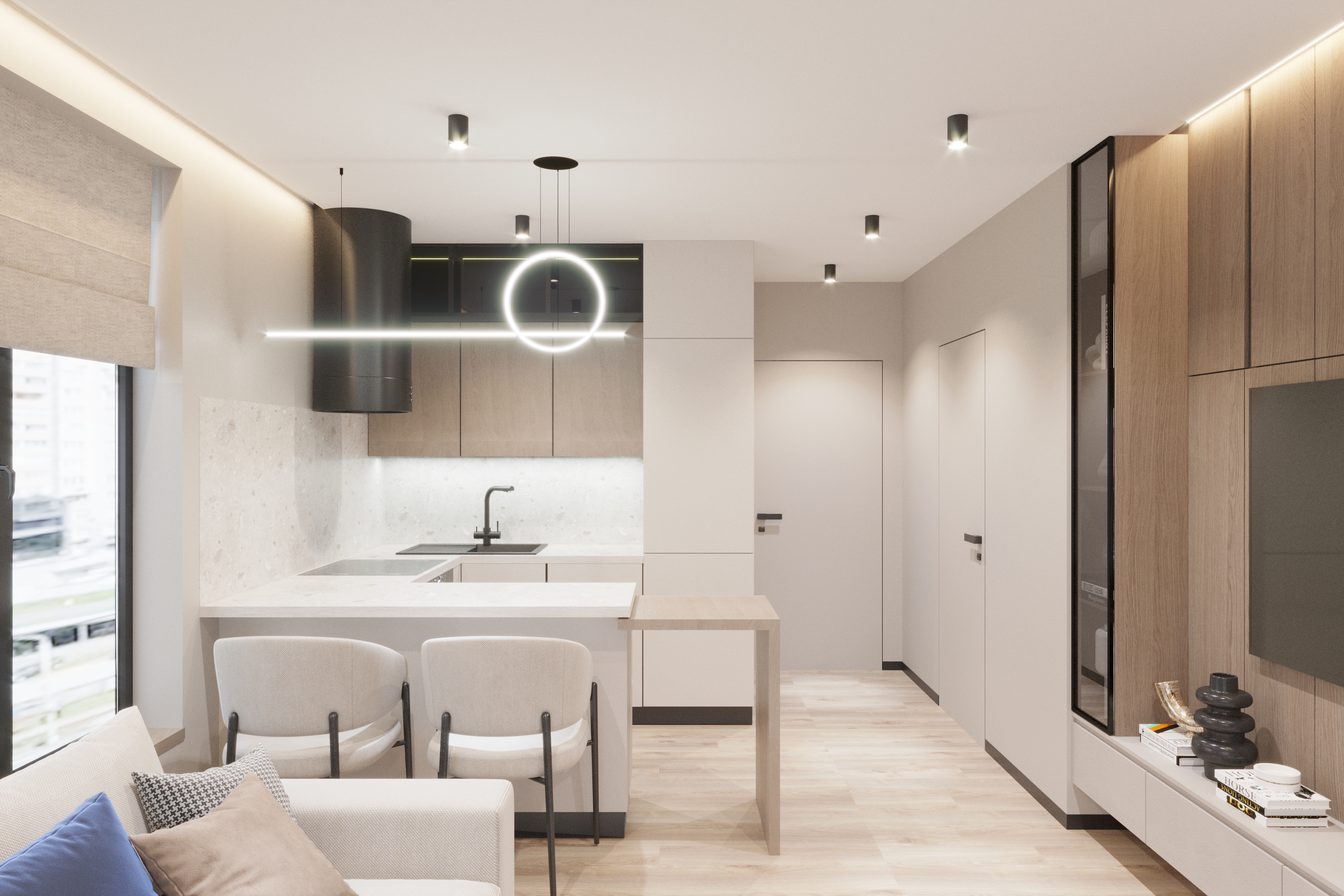 Дизайн-проєкт невеликої дворівневої квартири в ЖК «31» від Ковальської на вул. Драгоманова, 31. Компактний, але функціональний сучасний простір для життя.