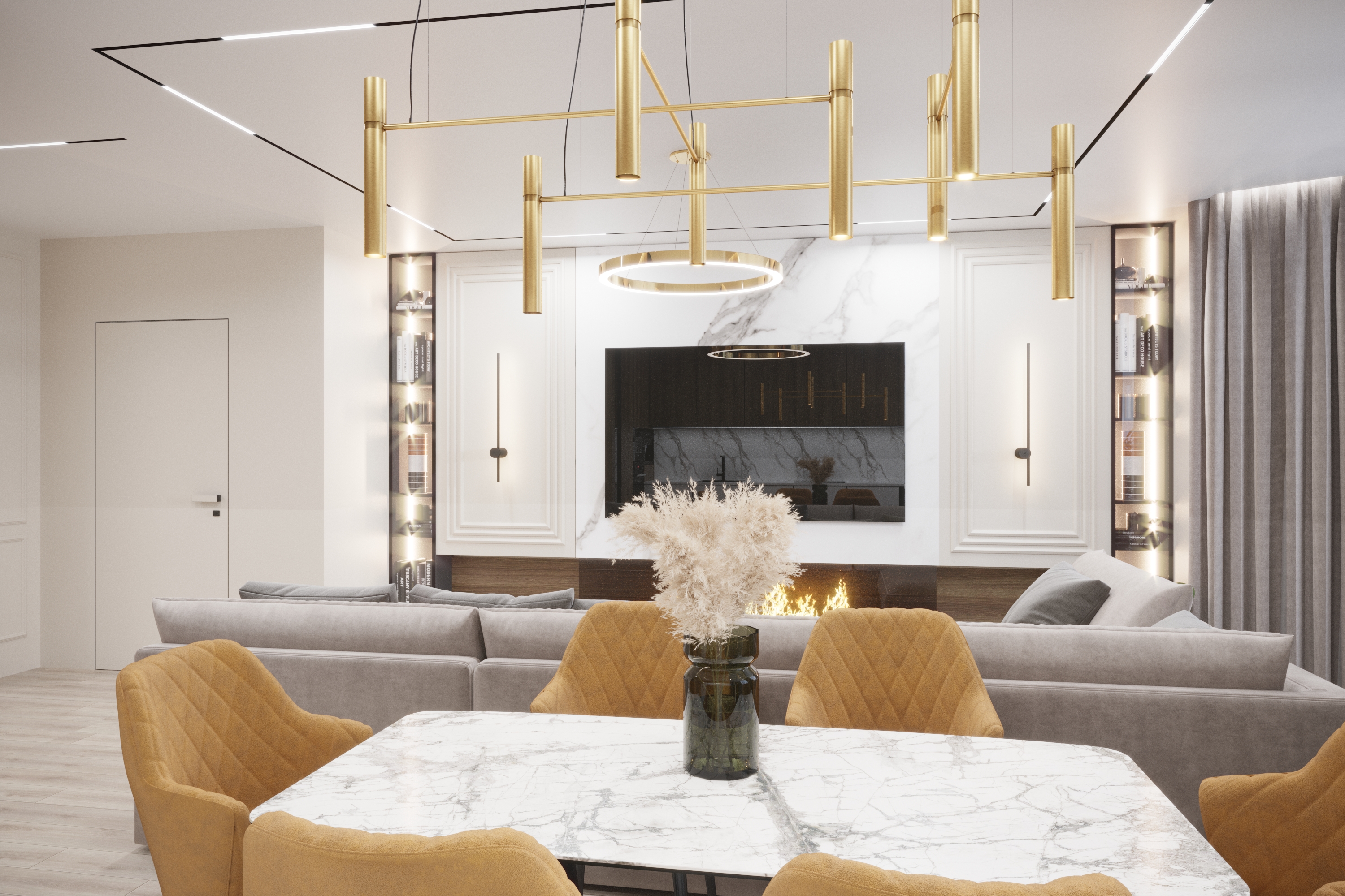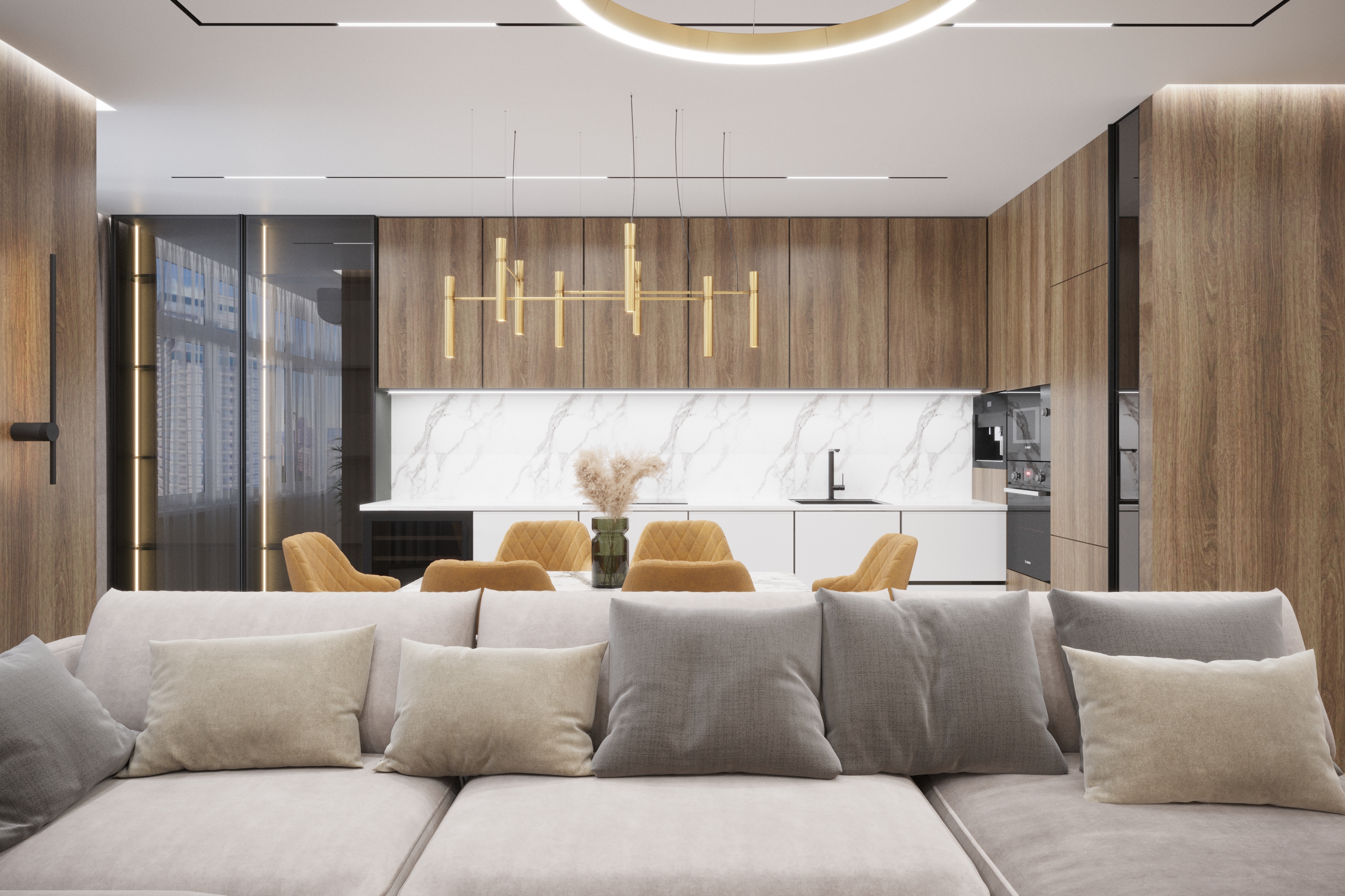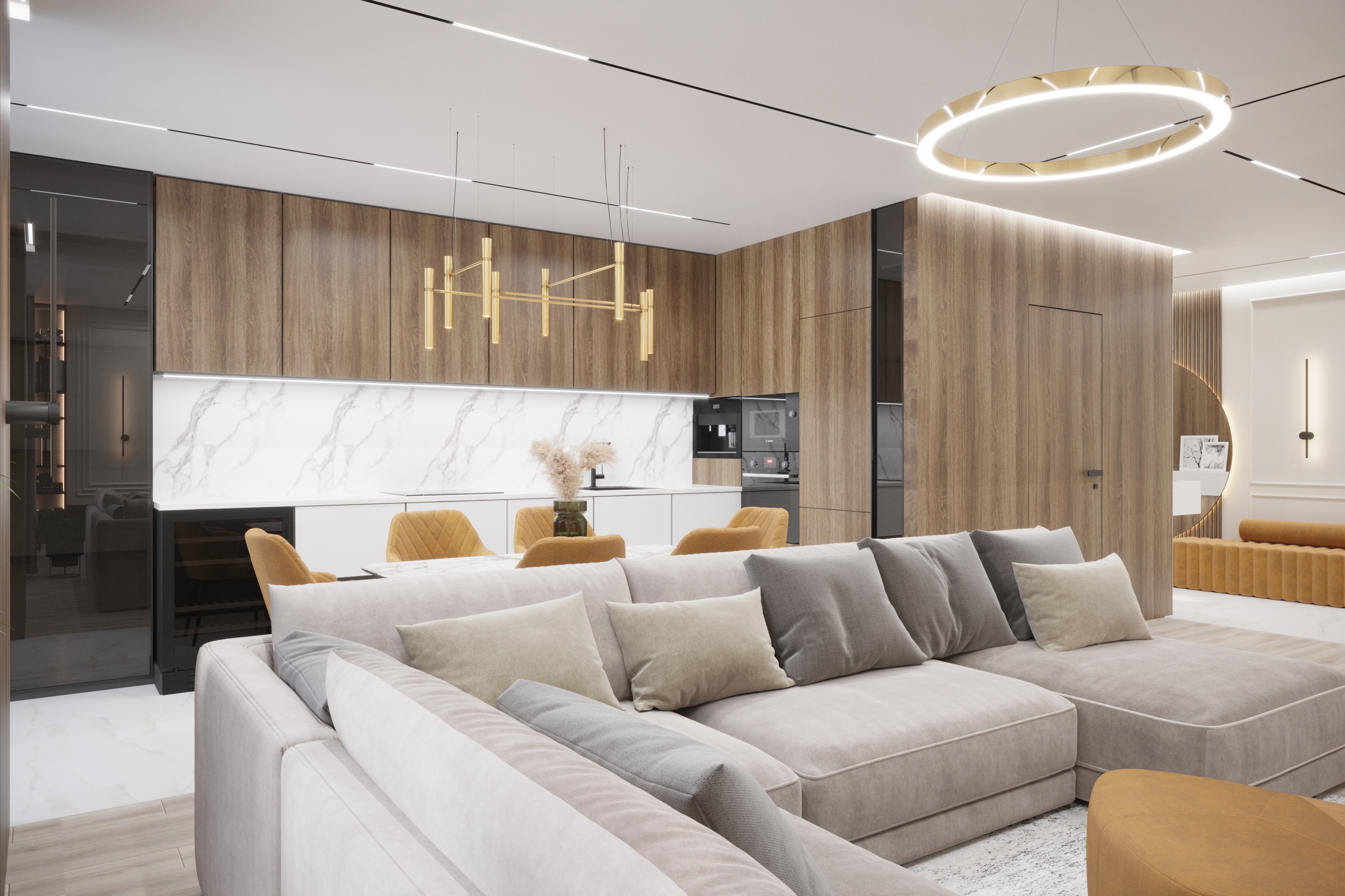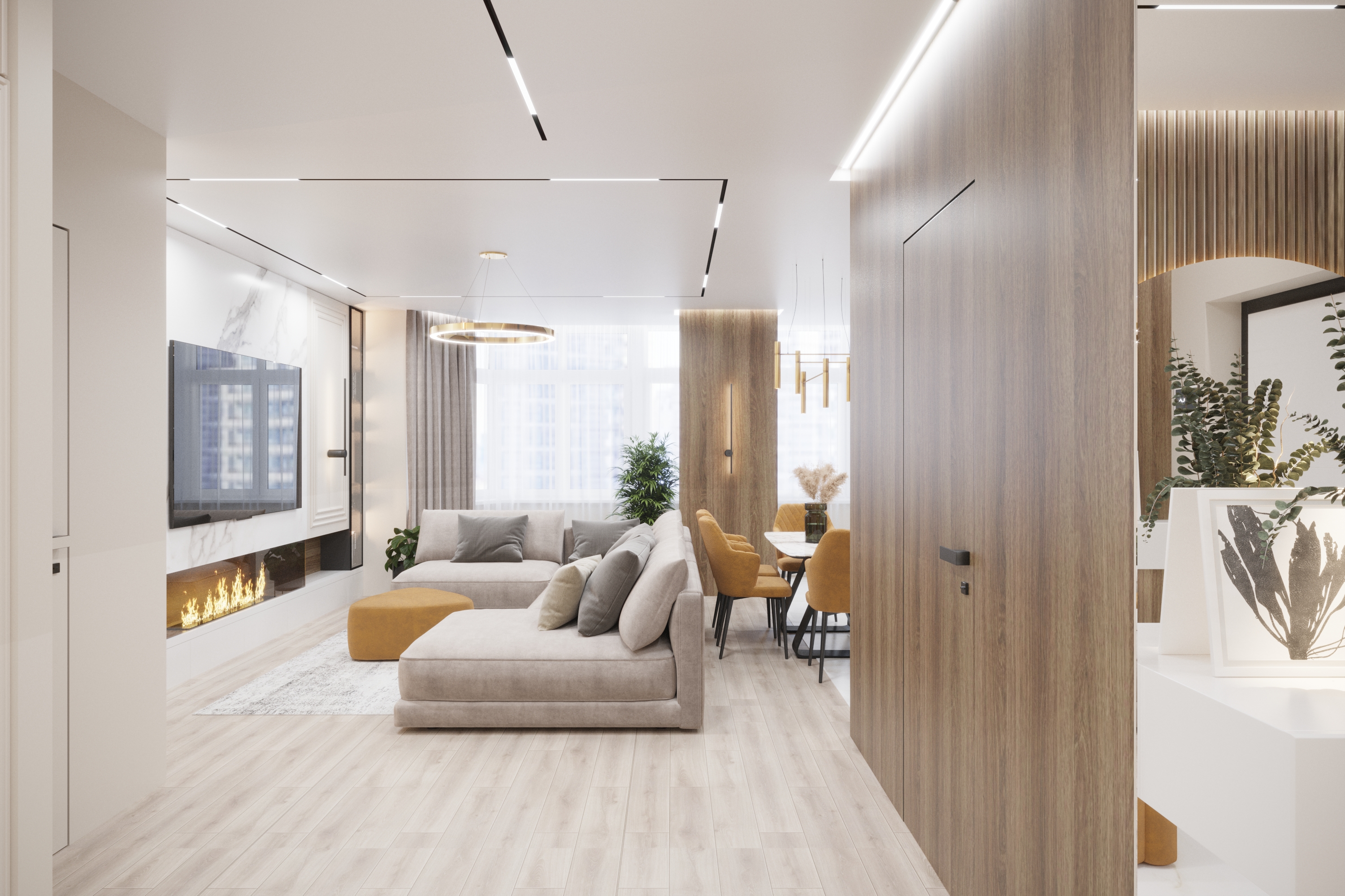 Дизайн-проєкт трикімнатної квартири площею 110 м2 у ЖК Династія у Києві. Сучасний інтер'єр, що поєднує функціональність та елегантність.