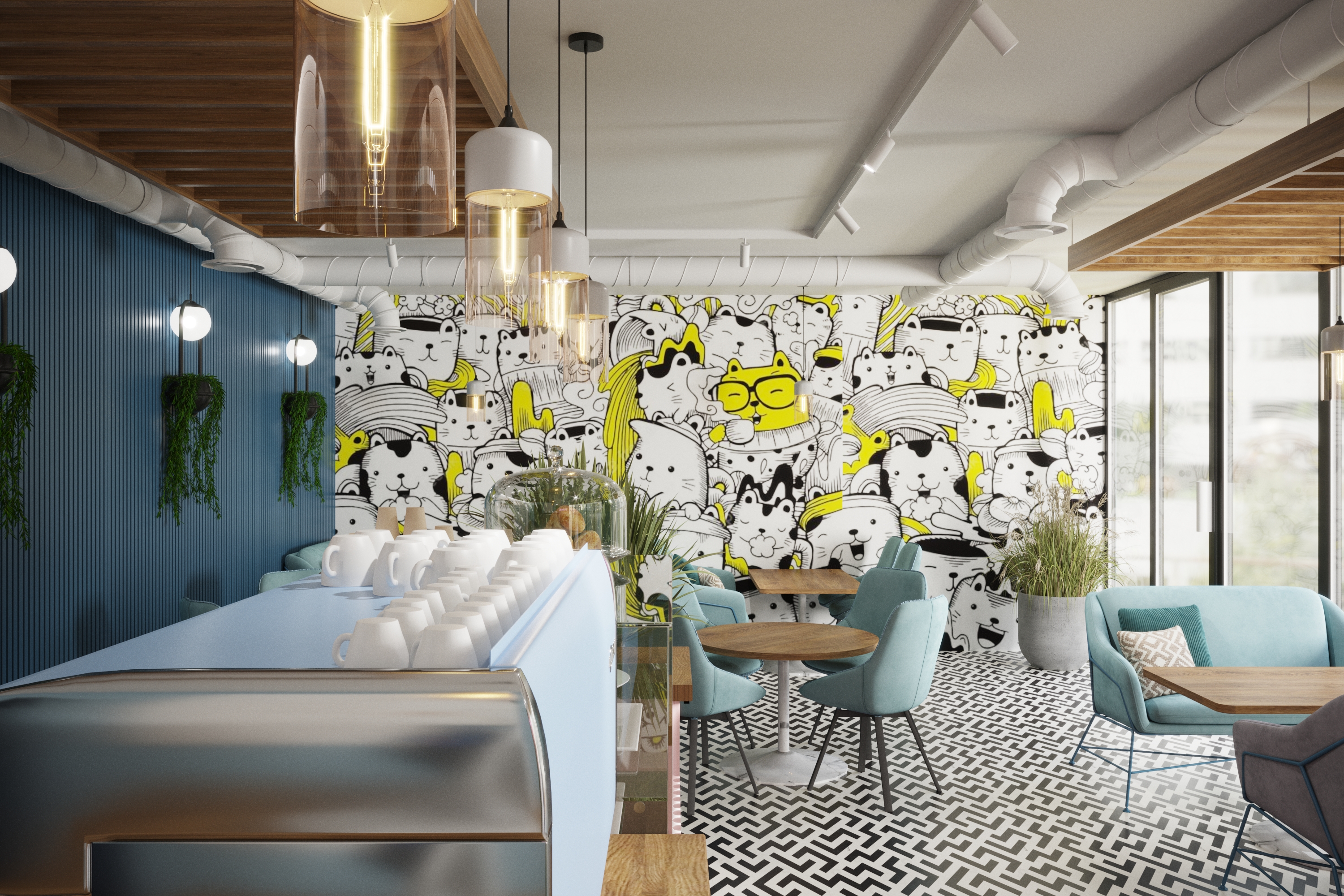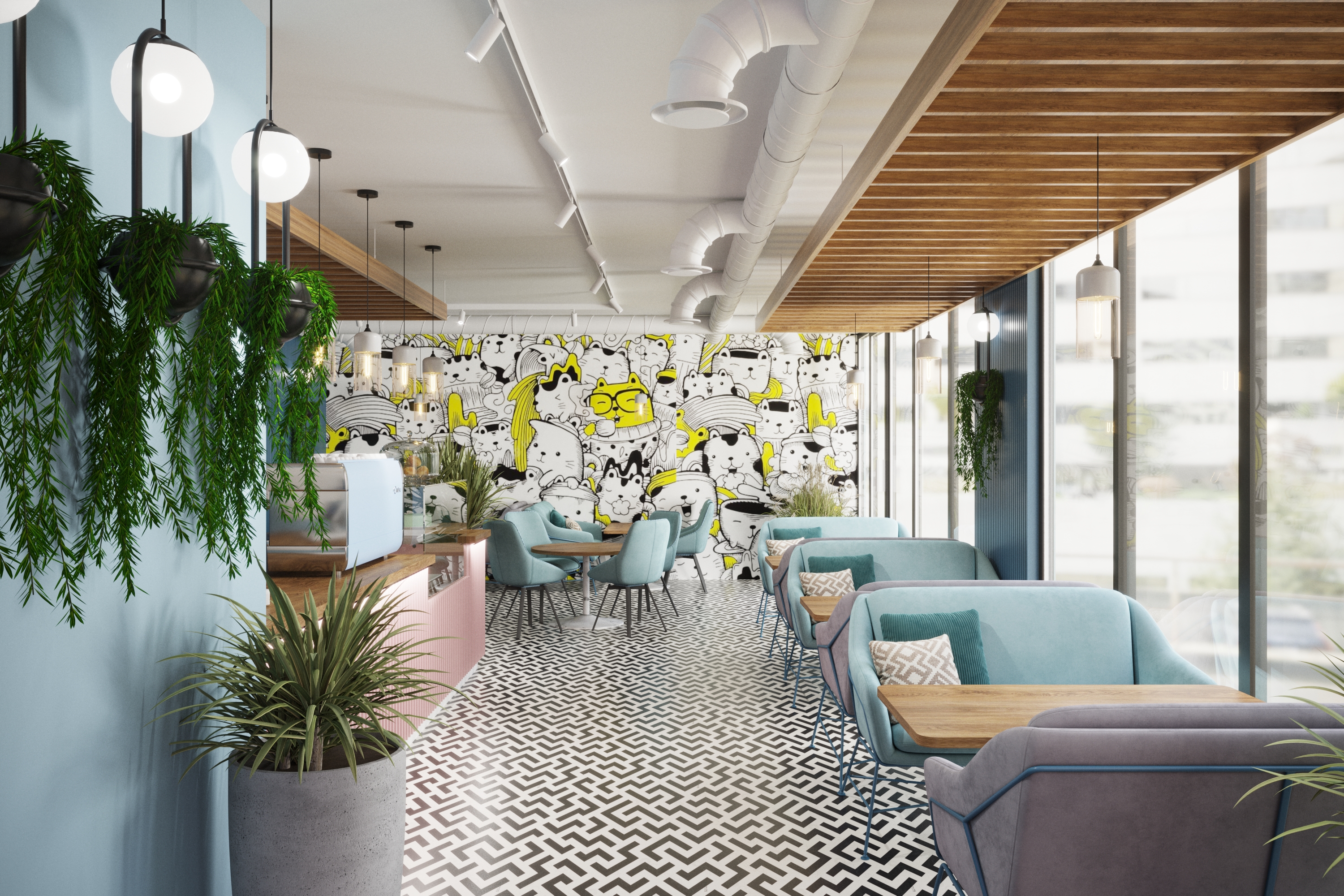 Наш дизайн-проект стильной кофейни в городе Умань. Яркий интерьер с элементами поп-арт в сочетании со вкусным и ароматным кофе зарядит позитивом на весь день.